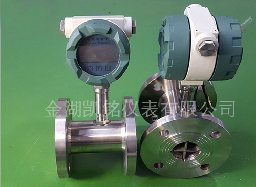 渦輪流量計采用渦輪進行測量。它先將流速轉(zhuǎn)換為渦輪的轉(zhuǎn)速,再將轉(zhuǎn)速轉(zhuǎn)換成與流量成正比的電信號。這種流量計用于檢測瞬時流量和總的積算流量,其輸出信號為頻率,易于數(shù)字化。圖中感應線圈和永久磁鐵一起固定在殼體上。當鐵磁性渦輪葉片經(jīng)過磁鐵時,磁路的磁阻發(fā)生變化,從而產(chǎn)生感應信號。信號經(jīng)放大器放大和整形,送到計數(shù)器或頻率計,顯示總的積算流量。同時將脈沖頻率經(jīng)過頻率-電壓轉(zhuǎn)換以指示瞬時流量。葉輪的轉(zhuǎn)速正比于流量,葉輪的轉(zhuǎn)數(shù)正比于流過的總量。渦輪流量計的輸出是頻率調(diào)制式信號,不僅提高了檢測電路的抗干擾性,而且簡化了流量檢測系統(tǒng)。它的量程比可達10:1,精度在±0.2%以內(nèi)。慣性小而且尺寸小的流量計的時間常數(shù)可達0.01秒。